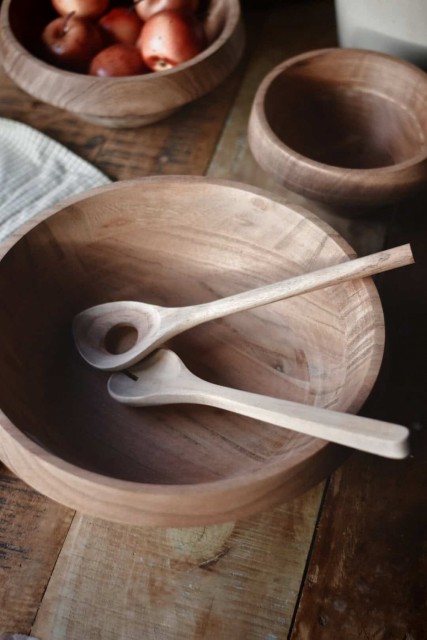 Dette produktet er laget av akasietre, en tresort som er naturlig antiseptisk. Det er ikke brukt noen kjemikalier i produksjonen; alt er 100% naturlig. Treverket er heller ikke behandlet, så vi anbefaler å bruke mat/ kjøkkenolje for å forlenge varigheten til produktene. Sett produktet inn i matolje, la det trekke inn i et par timer og tørk av den overskytende oljen.